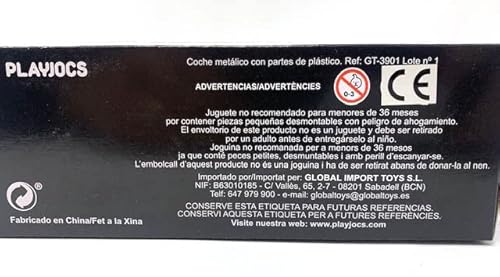 veicolo in metallo e plastica, ideale per il collezionismo e il divertimento per i più piccoli. Collezionabile: ci sono molti modelli, cercali in Amazon nei playjocs I giocattoli di Playjocs sono di alta qualità e daranno ore di divertimento ai tuoi bambini. Abbiamo molta esperienza nella produzione di veicoli e abbiamo molti modelli diversi in offerta. Trovali tutti in Amazon cercando "playjocs" e scegli il tuo modello preferito. Affidati a noi e siamo sicuri che verrai a comprarci più volte.