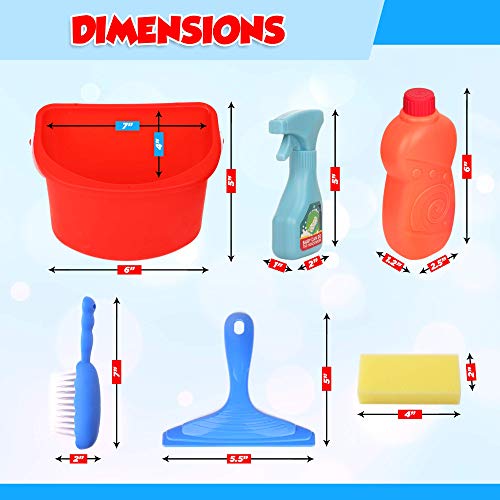 Playkidiz 6 Pezzi Deluxe Giocattolo, Include Spray, mocio, Spazzola, Scopa Bambini Gioco, Spugna, tergivetro-Play Helper Set di Pulizia Realistico, Multicolore