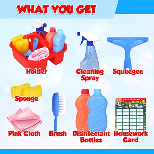 SET DI PULIZIA: Il set di pulizia Playkidz contiene una gamma completa di prodotti per bambini che include spugne, spazzole, panni, bottiglie, spazzole, tabella dei lavori domestici e un caddy!