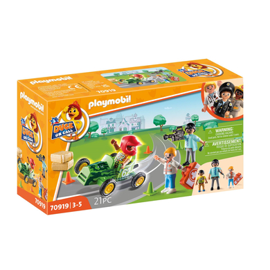 Il corridore doveva andare un po' troppo veloce! Cade e si ferisce, ma non c'è da preoccuparsi, il medico di emergenza è già lì. Mikey in azione! Il medico di emergenza aiuta il pilota che ha avuto un incidente. Dettagli del prodotto: Dimensioni (lunghezza x larghezza x altezza): 24,8 x 14,2 x 7 cm Figure: 1 Mikey Medic, 1 reporter, 1 bambino pilota Accessori: 1 scatola di sapone, 2 balle di paglia, 1 macchina fotografica, 1 microfono, 1 kit di pronto soccorso, 4 piloni, 1 foglio di gesso Età: da 3 anni Attenzione Non adatto ai bambini sotto i 3 anni. Pericolo di soffocamento a causa di piccole parti che possono essere inghiottite