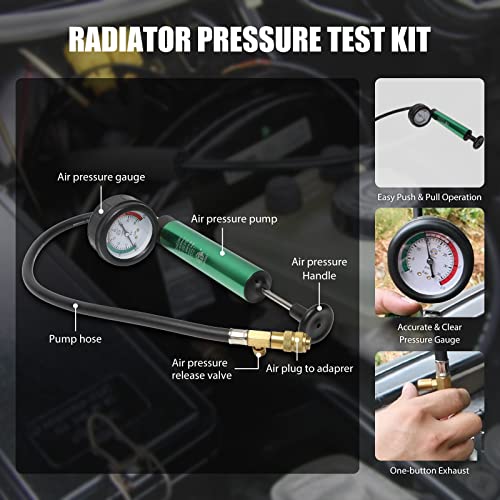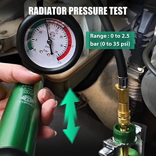 【COMPATIBILITA'】 Il kit del tester di pressione del radiatore per autoveicoli è dotato di un adattatore universale in plastica. Adatto per la maggior parte delle auto e dei camion sul mercato. Ampiamente compatibile con Ford, Chrysler, Volkswagen, Audi, Volvo, Cyber, Mercedes, Subaru, Toyota, Honda, Nissan, Mitsubishi, Mazda e altri.