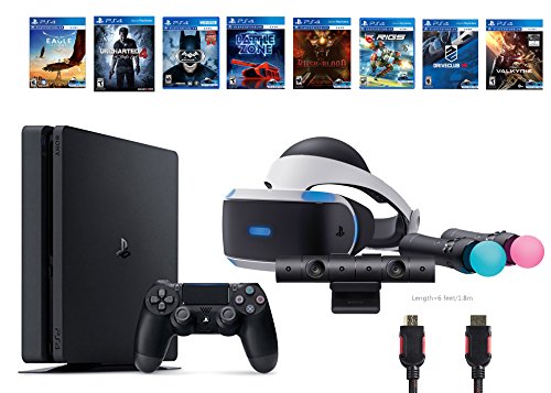 PlayStation VR Start Bundle 10 Items:VR Start Bundle,PS4 Slim- Uncharted 4,7 VR Game Disc Until Dawn:Rush of Blood, EVE:Valkyrie,Battlezone,Batman:Arkham VR, DriveClub,Eagle(Versione USA, importato)
