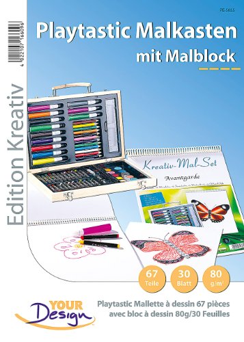 Playtastic Caso di pittura: Scatola di pittura 67 pezzi con un blocco di pittura 80 g/m² 30 fogli (Pastelli)
