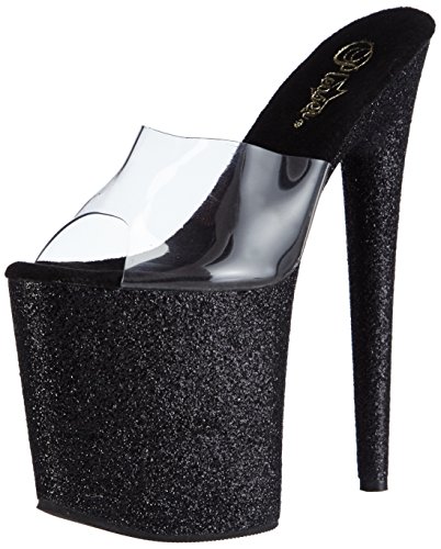 Pleaser FLAMINGO-801SDG, Sandali con Tacco Donna, Trasparente (Clear/Blk Glitter), 37 EU