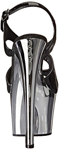 Pleaser's Sky Sandal offre un look ultra audace e di alto livello. Ha una tomaia lucida con cinghie alla caviglia con fibbia, oltre a una piattaforma e tallone provocati da indossare sopra il resto della testa e delle spalle.