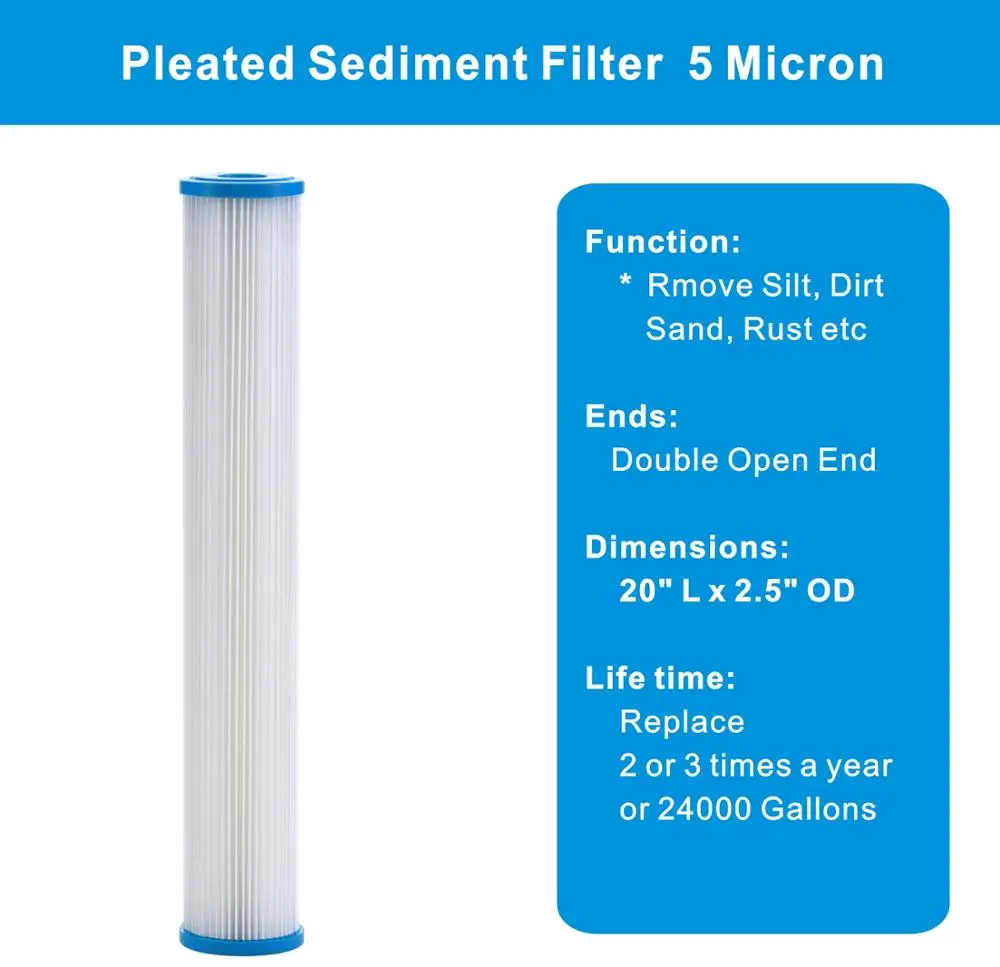 2 PACK OF Pleated Sediment Water Filter Home or Commercial, Reusable 2.5" x 20" - 5 μm