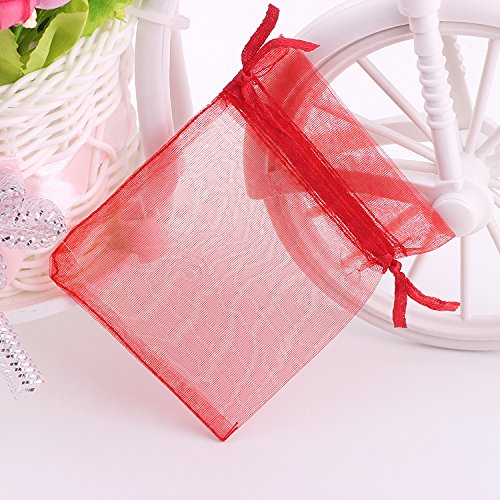 PLECUPE 100 pezzi Sacchetti Confetti, Sacchetti Organza 10x15 cm, Sacchetti Regalo, Organza con Coulisse, Saccgetti Portaconfetti Borse Gioielli Sacchetto di Caramelle - Rosso