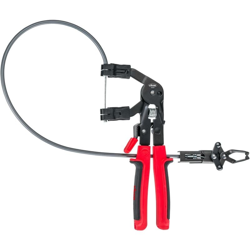 Operation of hard-to-reach fuel line clutches Flexible bowden cable No damage to the clutches and hoses due to proper operation of quick-release fasteners Bowden cable locking element facilitates precise adjustment of the range Easy release of the lock due to internal spring Total length of bowden cable: 590 mm Opening width: 30 mm Dimensioni dell'imballaggio 1