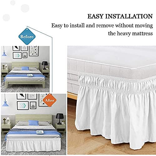 Plissettato Gonna da Letto Matrimoniale/Singolo/Piazza e Mezzo Tre Lati Tessuto,Poliestere Elastica Avvolgere Mantovana Giroletto Tre Lati Dust Ruffle Mantovana - con Drop di 38 cm