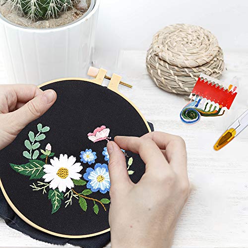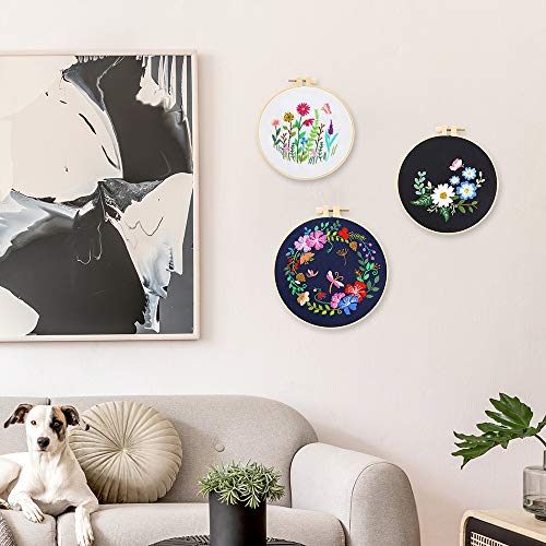 Pllieay Kit Ricamo Starter con 3 motivi e istruzioni, Set da Ricamo per Principianti, include 3 Telaio Ricamo in plastica, fili colorati e strumenti