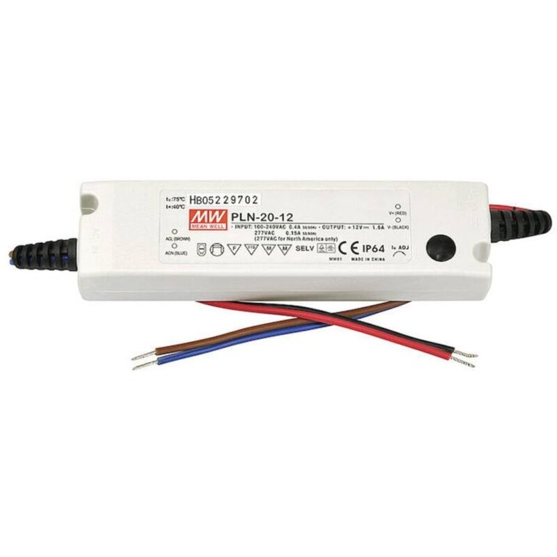 Dettagli tecnici Caratteristiche driver LED Circuito PFC, Protezione sovraccarico, dimmerabile Collegamento (Componenti) Cavo con estremità aperte Corrente di uscita max. 1.6 A Dimensione del prodotto, larghezza 37.00 mm Dimensione del prodotto, lunghezza 147.00 mm Dimensioni prodotto Altezza 28.00 mm Modello (driver LED) Tensione costante, Corrente costante Modello (in generale) Tensione fissa/corrente costante Num. uscite 1 x Numero di ingressi 1 x Peso 180.00 g Potenza (max.) 19 W Tensione di funzionamento 115 V/AC, 230 V/AC Tensione di ingresso (max.) 277 V/AC Tensione di ingresso (min.) 90 V/AC Tensione di uscita (max.) 12 V/DC Tipo adattatore di rete Switching Tipo di protezione IP64 Uscita alimentazione (min) 9 V/DC Alimentatore switching LED Alimentatore a LED in alloggiamento in plastica con una gamma di tensioni in ingresso da 90 a 295 V AC. Uscita Mixed Mode (tensione costante fino alla corrente massima, poi corrente costante) (C. V.+C.C.), classe di protezione IP64 Testo
