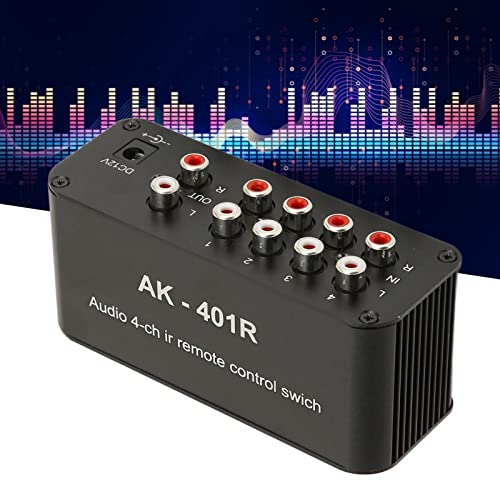 Plplaaoo Switcher Audio,Scatola selettore Audio, Splitter Interruttore Audio Canale Audio, selettore RCA a 4 Vie Multifunzionale 4 in 4 out RCA selettore Interruttore Stereo con Telecomando IR