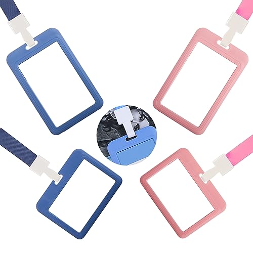 Plstod 4 Pezzi Porta Badge da Collo con Cordino, Porta Badge Trasparente per Ufficio, Scuola, Carta Dell'autobus, Porta Badge Identificativo,Infermiere Portabadge e Cinghia da Collo per Badge