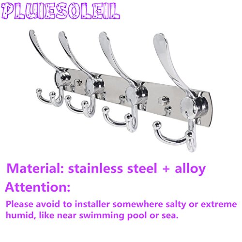 PluieSoleil Gancio Appendiabiti Attaccapanni da Parete Bagno Ganci Portasciugamani Acciaio Inox per Giacche, Cappotti, Cappelli, Sciarpe (4 Ganci)