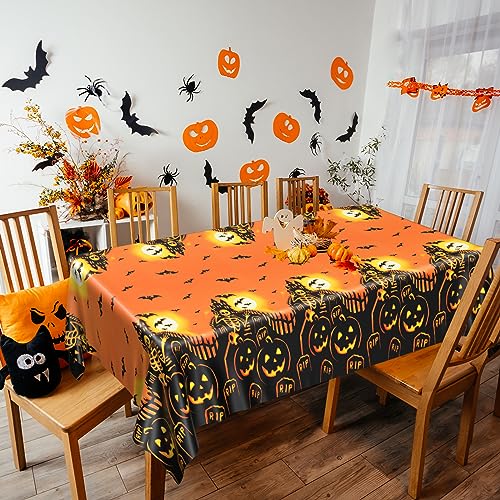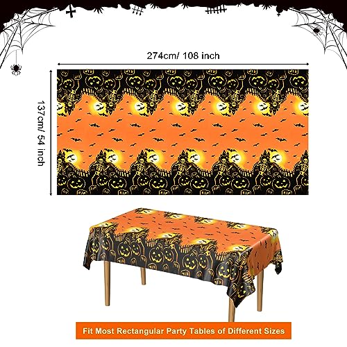 PLULON 2Pack Tovaglie di Halloween 137 x 274 cm Zucca Pipistrello Scheletro Teschio Tovaglia di Plastica Copritavolo di Halloween Felice per Decorazioni per la Tavola Cena Forniture Feste Halloween