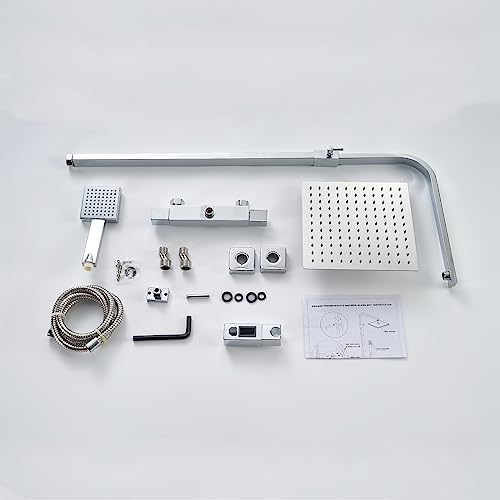 Plumbsys Sistema a Colonna per Doccia Cromo termostatica con Miscelatore termostatico, Quadrato Doccia a Mano e Doccia a Testa, Colonna per Doccia Regolabile in Altezza