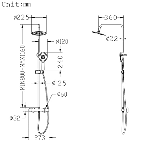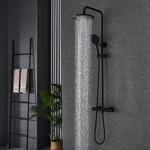 Plumbsys Sistema a colonna per doccia Nero termostatica con miscelatore termostatico, Rotondo doccia a mano e doccia a testa, colonna per doccia regolabile In altezza