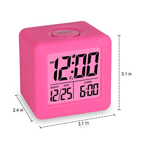 Plumeet Sveglia Digitale da Viaggio, Facile da Impostare, con Snooze, Retroilluminazione, Ampio Display per Ora, Mese, Data e Sveglia (Rosa)