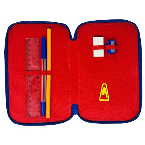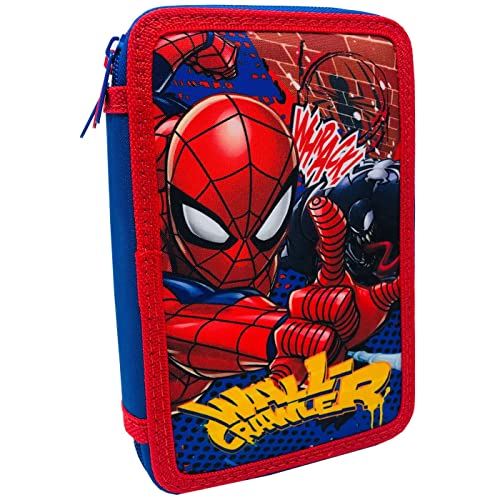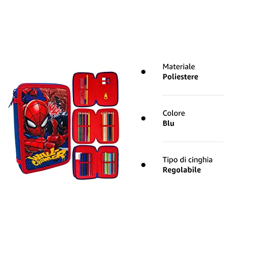 Plumier 3 zip astuccio di 3 posti Spiderman Marvel Astuccio per la scuola bambino 20 cm, astuccio 36 pezzi, colore blu