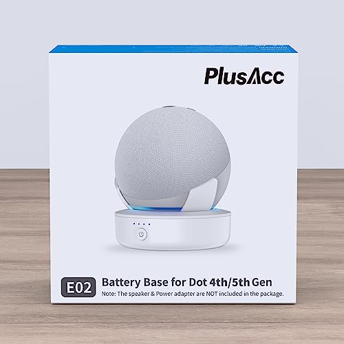 PlusAcc Batteria per Dot 5ª e 4ª - Base Batteria per Dot (5/4 generazione) con 16 ore di tempo di gioco, Bianco (Dot non incluso)