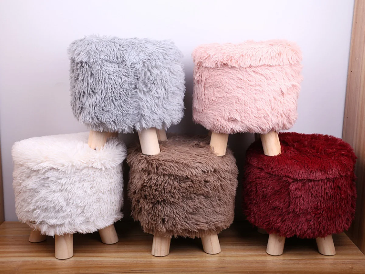 Plush Round Stool Round Pier With Cover And Detachable Cover Low Pier Stool For Shoe Changing