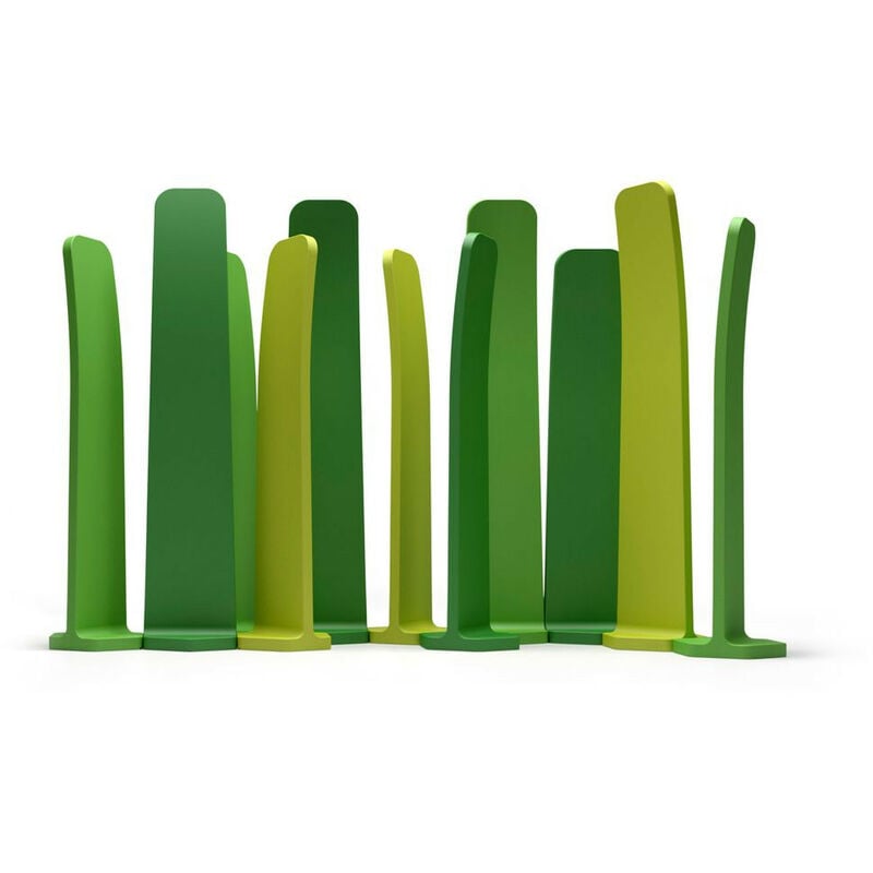 Parete modulare componibile, modello Gradient. Un vivace, colorato, gigante ciuffo d'erba...questa è Gradient, la parete modulare componibile ideata da Mut Design. Prodotta dalla nota azienda Plust, Gradient viene interamente realizzata in polietilene, materiale che la rende utilizzabile sia in ambienti interni che in spazi esterni . Questa contemporanea vegetazione in scala funge da divisorio nei diversi spazi e può essere della misura desiderata, dettata dalle personali esigenze. Piccola, media, grande...sarai tu a decidere di che grandezza vorrai Gradient accostando il numero di componenti da te scelti tra i diversi colori disponibili (verde acido, verde A2, verde B7 e bianco) e le 2 differenti misure fruibili: L36 x P40 x H160 cm - 8Kg L36 x P40 x H180 cm - 9.6Kg Un componente d'arredo di carattere, di tendenza che attira lo sguardo dell'avventore conquistandolo per originalità. Per coloro che desiderano un ancoraggio al terreno ben saldo, è disponibile il kit accessorio di