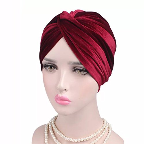Pluto & Fox Berretto Beanie in tessuto velluto tinta unita turbante elastico da donna per cancro chemioterapia chemo oncologico notte perdita di capelli capelli 2 pezzi, E, 56/58 cm