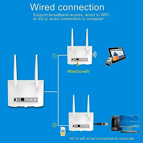 Plyisty Router Wireless 4G con Slot per Schede SIM, Router WiFi 300Mbps, Router Portatile da Viaggio Supporta Bande di Frequenza B1.B3.B7.B8.B20.B38.B40.B41, Controllo FOTA, per casa/Camion/RV