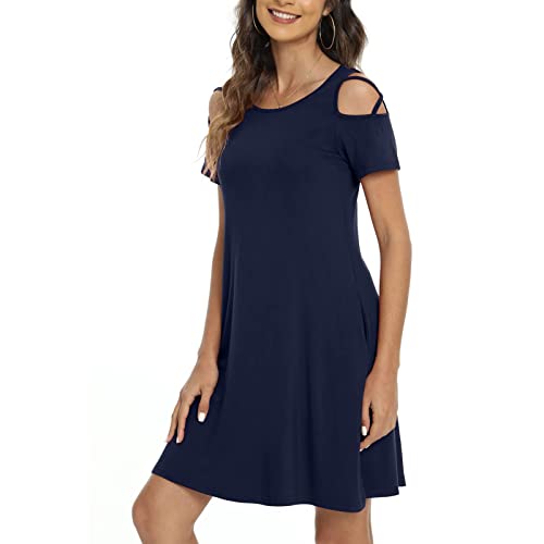 PMDKLSPQ Maxi abito da donna con lacci, estivo, con tasche, maniche a T, abito da donna, per il tempo libero, in pizzo, Blu, XXL