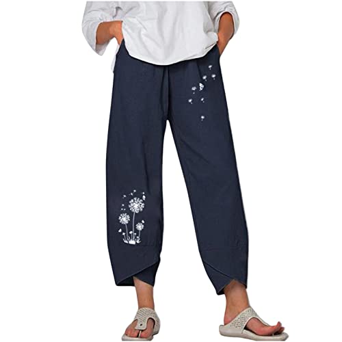 PMDKLSPQ Jeans da donna a 36 pantaloni corti da donna per ufficio e donna, pantaloni capri con tasche, gamba larga, casual, morbidi, leggeri, caprici, pantaloni cargo da donna, Blu marino, S