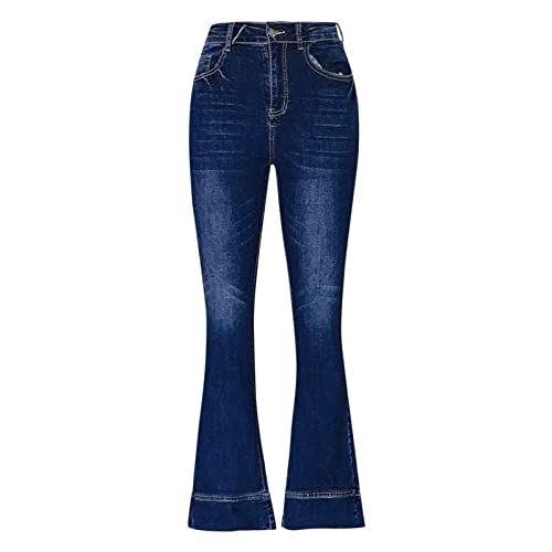 PMDKLSPQ Pantaloni da donna a zampa di jeans da donna, pantaloni a zampa alta, elasticizzati, jeans skinny Slim Fit, Blu scuro, XL