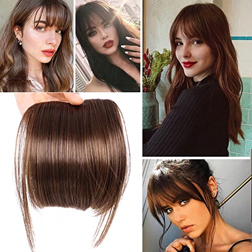 PMELCXD Frangia Sottile Capelli Veri, Frangia Clip 100% Veri Naturali Frangetta Air Bangs Finta Frangia Capelli Clip Frangia Extension Donna, Marrone chiaro