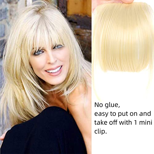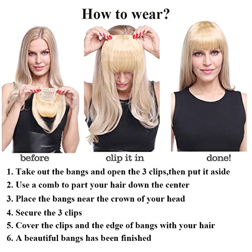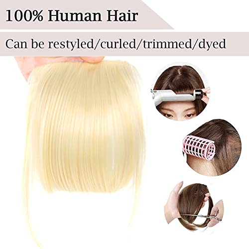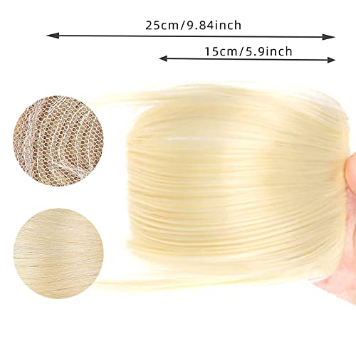 PMELCXD Frangia Sottile Capelli Veri, Frangia Clip 100% Veri Naturali Frangetta Air Bangs Finta Frangia Capelli Clip Frangia Extension Donna, Oro