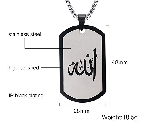PMTIER Unisex Islam Dio Religioso Acero Inoxidable Durante Collana con Catena