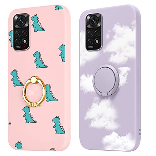 Pnakqil 2-Pezzi Supporto Cover per Xiaomi Redmi Note 11S/Note 11 (4G) 6,43", Ultra Sottile Morbida TPU Silicone con 360° Regolabile Anello Supporto Ring Custodia per Redmi Note 11, Dinosauri