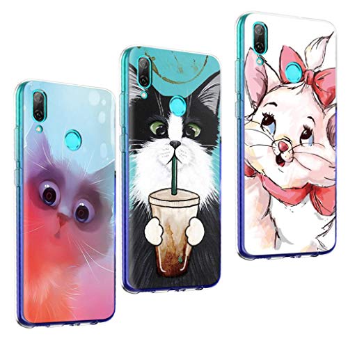 Pnakqil [3-Pack Cover per Huawei P Smart 2019, Custodia in TPU Silicone Trasparente con Modello Squisito Case Antiurto Anti-Graffio Ultra Sottile Cover per Huawei P Smart 2019, Gatto 02