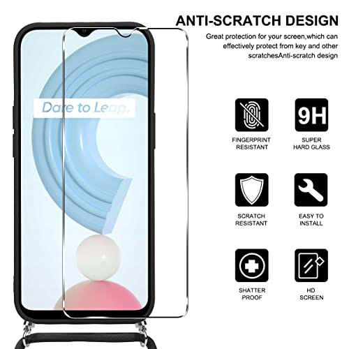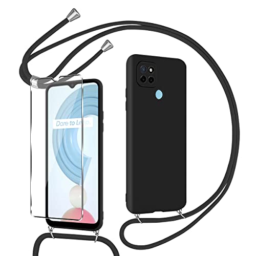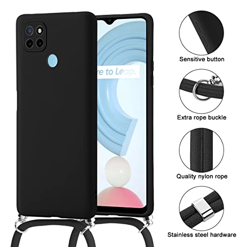 Pnakqil Cordino Collana Cover Compatible con Realme C21Y / C25Y 6.5", con 1 pezzi Vetro Temperato Pellicola Prottetiva, Cordino Custodia case in silicone smerigliato per Realme C25Y/C21Y, Nero