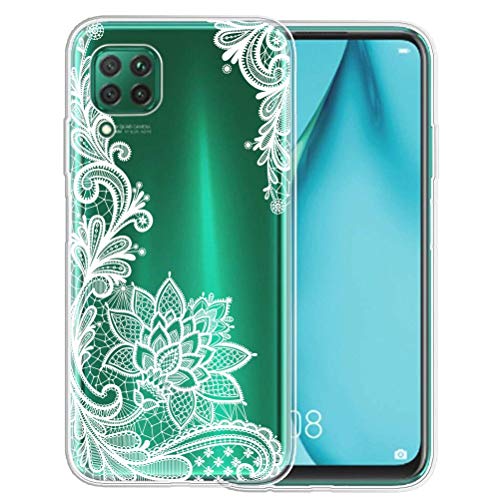 Pnakqil Cover per Huawei P40 Lite/Nova 6 SE, Custodia Silicone Morbido TPU Trasparente Case Ultrasottile Anti-Caduta Anti-Graffio Antiurto Cover per Huawei P40 Lite/Nova 6 SE, Fiore Bianco