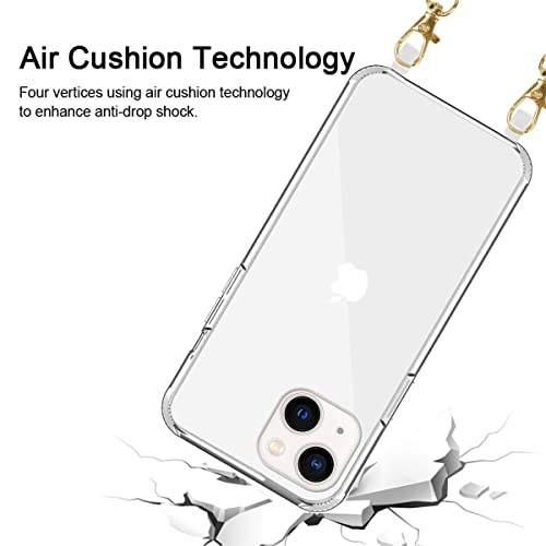 Pnakqil Cover per iPhone 14/iPhone 13 con Cordino, Custodia Transparent Silicone Telefoni Telefono Cellulari Protezione Case con 2 Collana Cinturino per iPhone 14, Catena di Metallo (Oro nero + Oro)