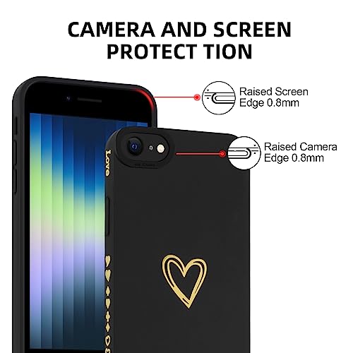 Pnakqil Cover per iPhone 8/iPhone SE 2020/iPhone 7/SE 2022 con Cordino, Custodia Protettiva Silicone Motivo a Forma di Cuore, Antiurto Case con Laccio Collana Tracolla per iPhone 8 4.7 Pollic, Nero