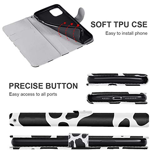 Pnakqil Cover per iPhone 11, Custodia in Pelle Portafoglio con Supporto Flip Folio Caso [Slot per Schede] [Chiusura Magnetica] Antiurto Protettiva Cover per iPhone 11 6,1'', Mucche