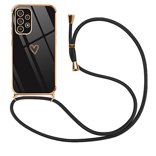 Pnakqil Cover con Laccio Compatibile con Samsung Galaxy A53 5G, Cuore Silicone Custodia con Cordino Collana Tracolla Antiurto per Samsung A53 5G 6.5 Pollic Donna Case, Nero