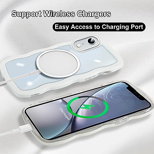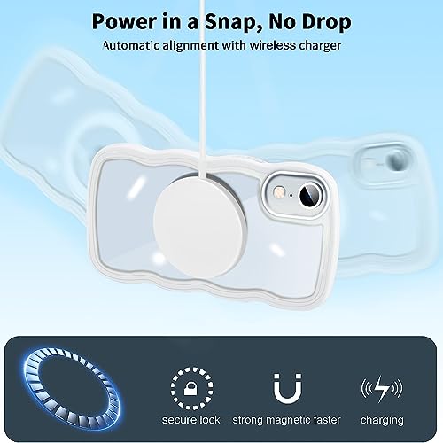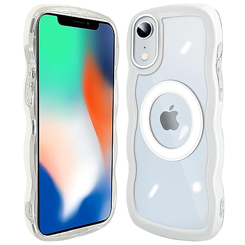 Pnakqil Cover Magnetica per iPhone XR Trasparente Compatibile con MagSafe Curly Wave Frame Custodia per Donna Ragazza Ultra Sottile Morbido Silicone Antiurto Case per iPhone XR Bianco