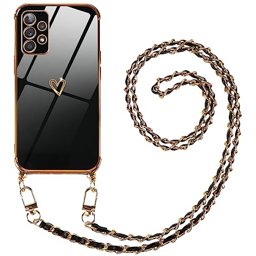 Pnakqil Cover per Samsung Galaxy A52 4G 5G/A52s 5G 6,5" con Cordino, Elettrolitico Custodia con Collana Carina Motivo Cuore, Antiurto Silicone Morbida e Sottile Catena per Cellulare Protection Case,1