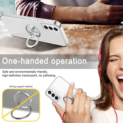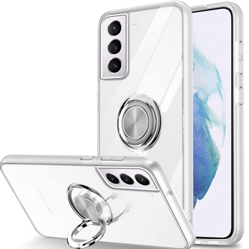 Pnakqil Cover per Samsung Galaxy S21 5G Trasparente Custodia con 360 Gradi Ruotabile Anello Magnetico Cavalletto, Morbido Silicone Ultra Sottile Antiurto Case per Samsung S21 5G