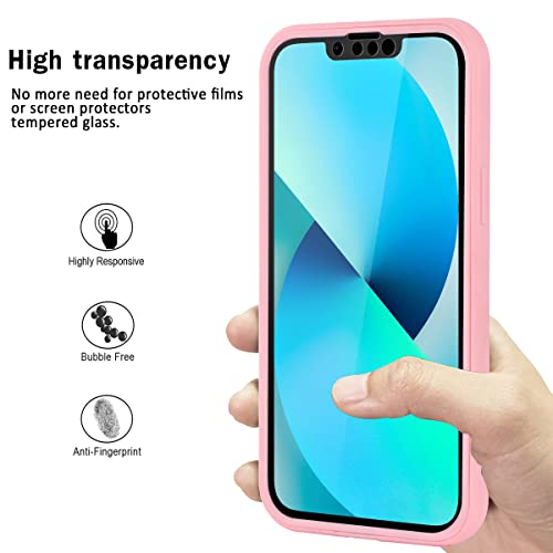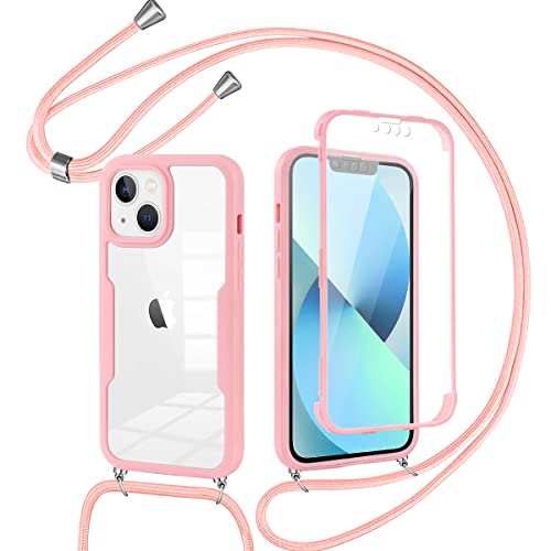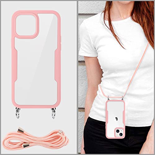 Pnakqil Custodia con Collana per iPhone 13 6.1",360 Gradi Silicone TPU Bumper e Trasparente PC Pannello Rugged Custodia Protettiva Case + 1 Cordino Cinturino,Custodia con Collana-Rosa
