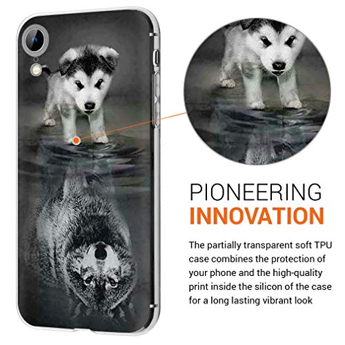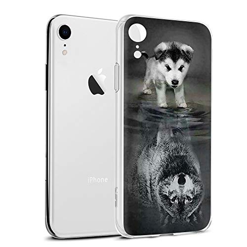 Pnakqil per iPhone XR Cover Trasparente, Premium Custodia Silicone con Disegni Leggero Ultra Sottile TPU Morbido Antiurto 3d Pattern Bumper Case per iPhone XR, Cane Lupo