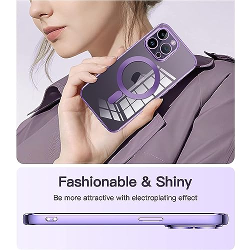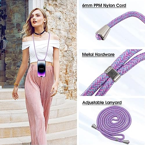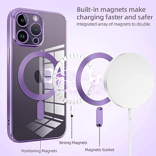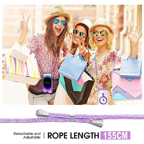 Pnakqil Magnetica Cover con Cordino per iPhone 14 Pro Max, Compatibile con Magsafe, Trasparente Placcatura Disegno Custodia con Collana Laccio Tracolla per iPhone 14Pro Max, Ultra Sottile (Purple)