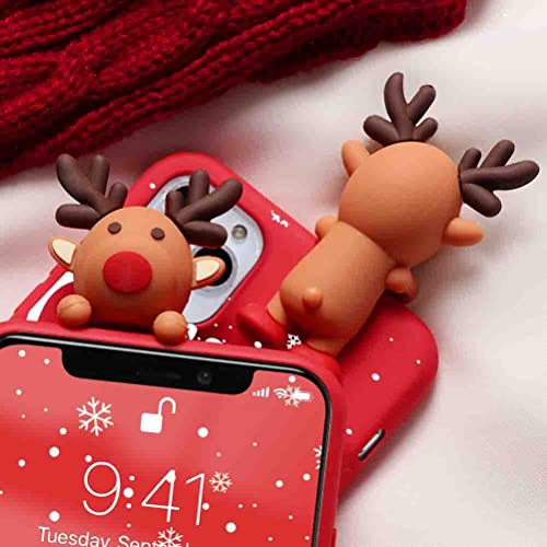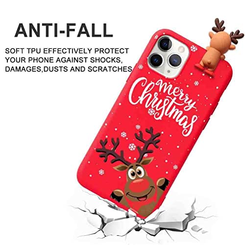 Pnakqil Natale Cover per Apple iPhone 13 Pro 6,1", Ultra Sottile Morbida TPU Rosso Silicone con 3D Bambola e Disegni Pattern Ragazza Anti-Graffio Antiurto Case Protettiva per iPhone 13 Pro, Alce 1