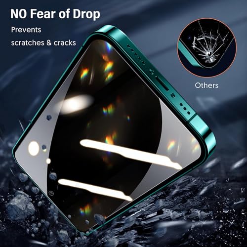 ★ [Ultra-High 9H Durezza] Anti-Spy Protezione Schermo si basa sulla durezza di 9h standard militare e una struttura di rinforzo a compressione a 5 strati è adottata. La colla ottica OCA ha una forte adesione per massimizzare la protezione dello schermo senza rottura. Sorprendentemente, anche se il telefono cellulare è caduto da un alto 1 m alla superficie dura, lo schermo era ancora intatto. Devi solo spendere una tazza di caffè per evitare costosi costi di manutenzione dello schermo.